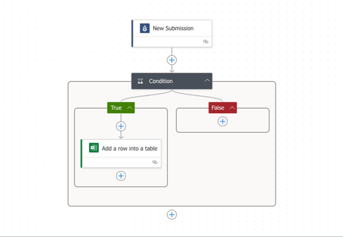 Je moet het pad configureren dat de flow zal volgen wanneer aan de condition is voldaan. Klik op het + pictogram onder True. Klik op Add an action.