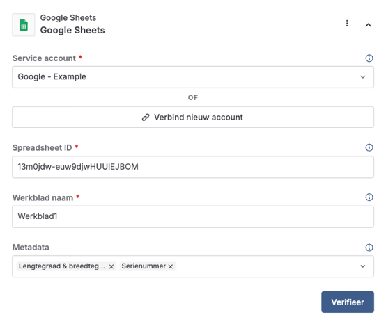 2. Configureer de Google Sheets integratie