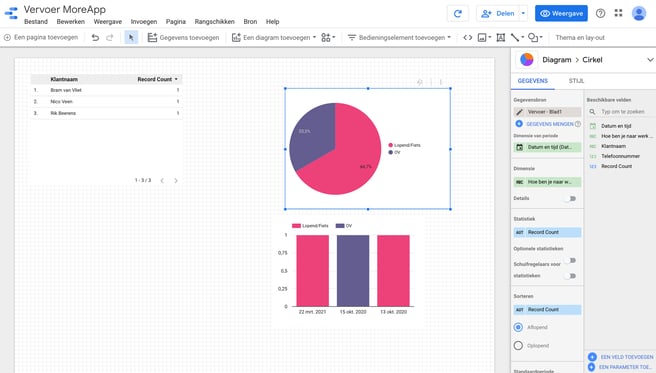 Zodra je jouw webhooks hebt geconfigureerd en jouw database registraties ontvangt, kies je een dashboard tool. In dit voorbeeld is dat Google Data Studio.