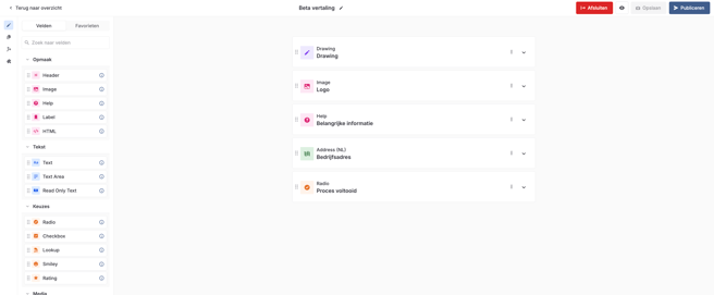 Maak een formulier in het Platform en klik op Opslaan & Publiceren.