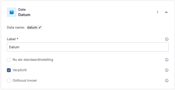 Een andere mogelijkheid is het verplicht maken van velden. Als je een veld verplicht maakt, verschijnt er een foutmelding die aangeeft dat het verplichte veld moet worden ingevuld. Als je Onthoud invoer selecteert, wordt de laatste invoer van de gebruiker op zijn/haar toestel bewaard.