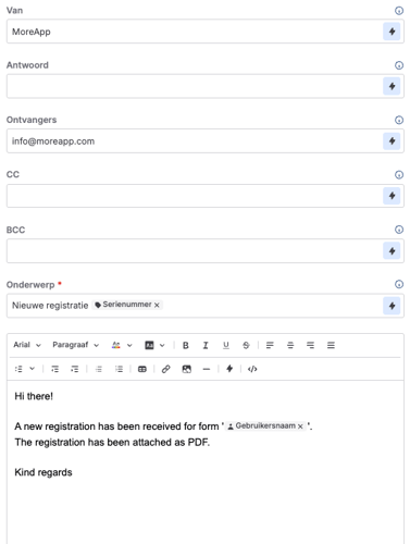 Het is ook mogelijk om meerdere e-mails toe te voegen als je verschillende templates moet sturen.