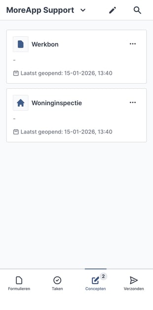 MoreApp geeft de mogelijkheid om je formulier op te slaan als concept, in de App of Web App, zodat je er op een later moment verder mee kunt.