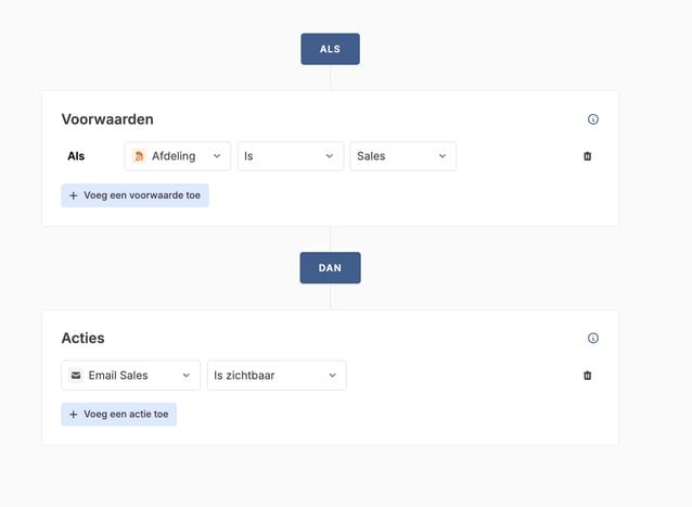 Ga naar de Regels tab en klik op + Maak een nieuwe regel. Elk Email veld heeft zijn eigen regel.