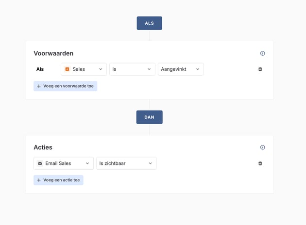 Configureer de regel zoals in de afbeeldingen hieronder, afhankelijk van welk veld je gebruikt in je formulier: