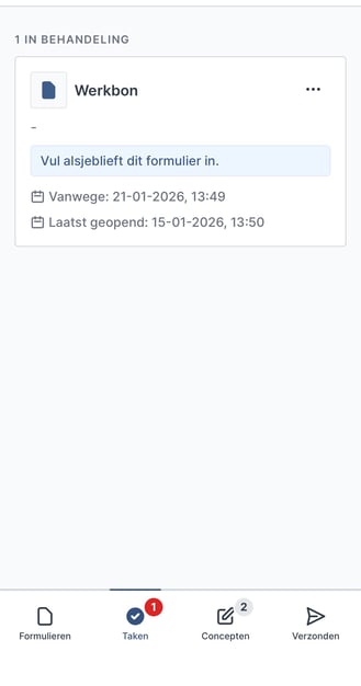 Een Taak is een workflow tussen twee gebruikers die hetzelfde formulier invullen. Met deze functie kun je van tevoren velden invullen in een formulier via het Platform. Je kunt het formulier toewijzen aan een andere gebruiker om de taken te bevestigen of af te maken.