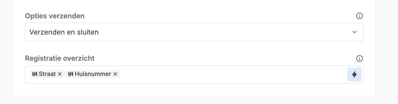 Ga naar de Instellingen tab van je formulier en vul de omschrijving in bij Omschrijving in app. Je kunt placeholders gebruiken door op de turquoise knoppen te klikken of door een beschrijvende tekst naar keuze in te voegen.